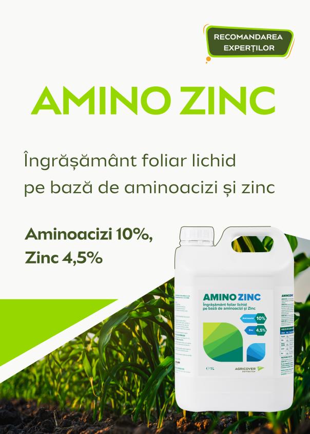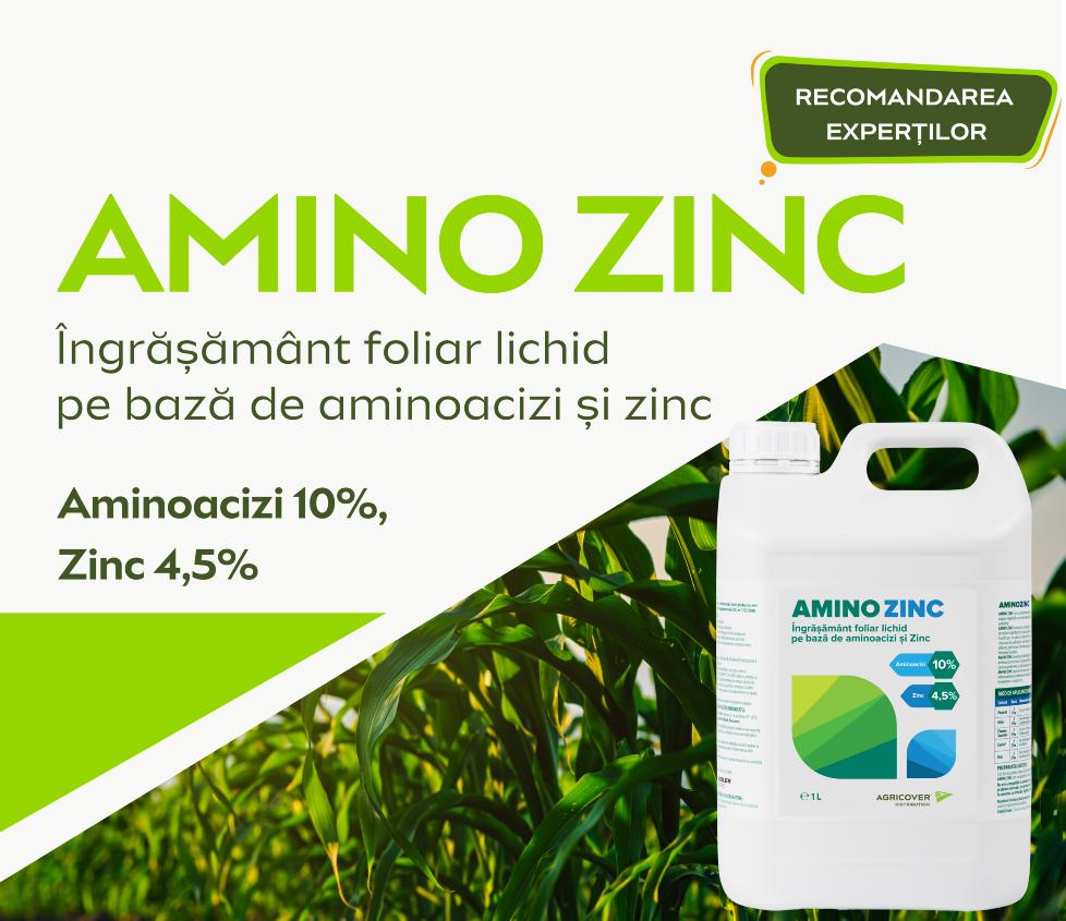 AMINO ZINC acţionează ca un stimulator al creșterii plantei, înfloririi, fructificării și ca un corector al deficienţelor de zinc