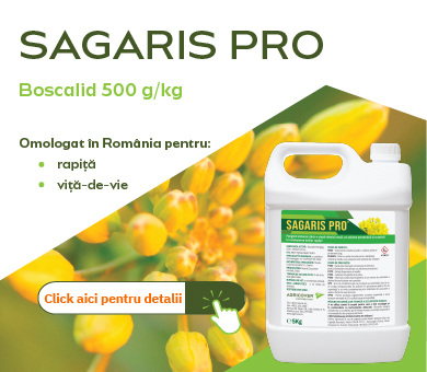 SAGARIS PRO este un fungicid sistemic cu utilizare preventivă și curativă în combaterea bolilor la culturile de rapiţă şi viţă-de-vie.